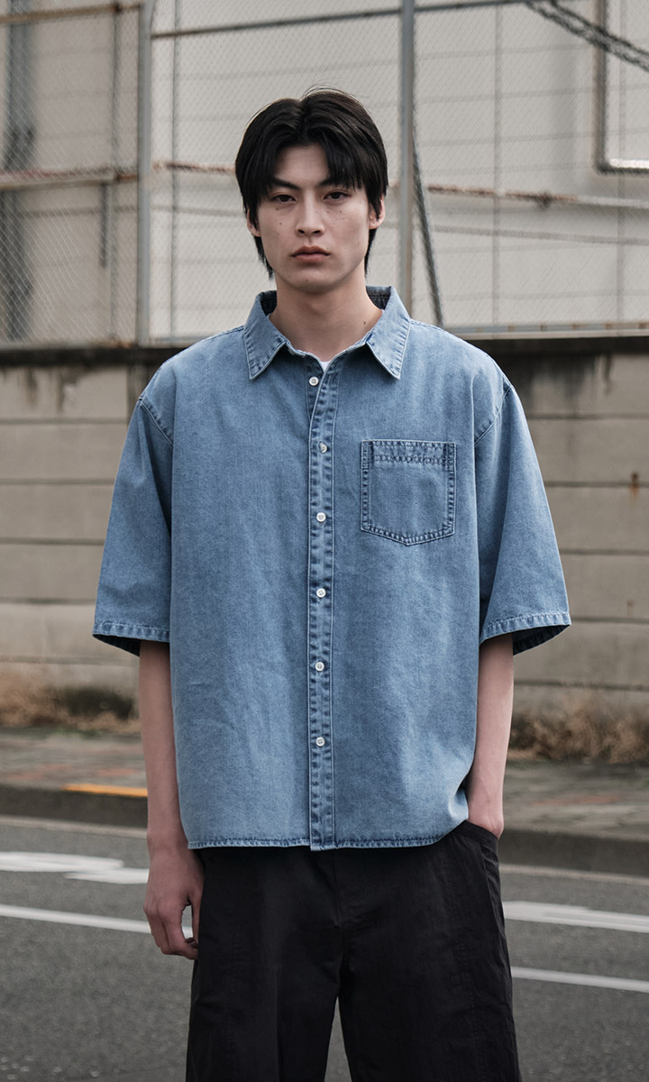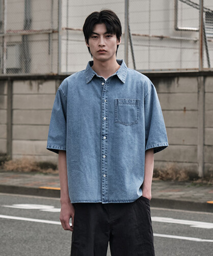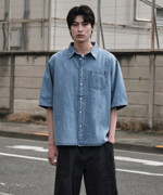 오버핏 데님 반팔 셔츠_블루 (오버핏)