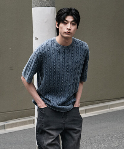 헨리넥 반팔 니트_블랙 (세미오버핏)