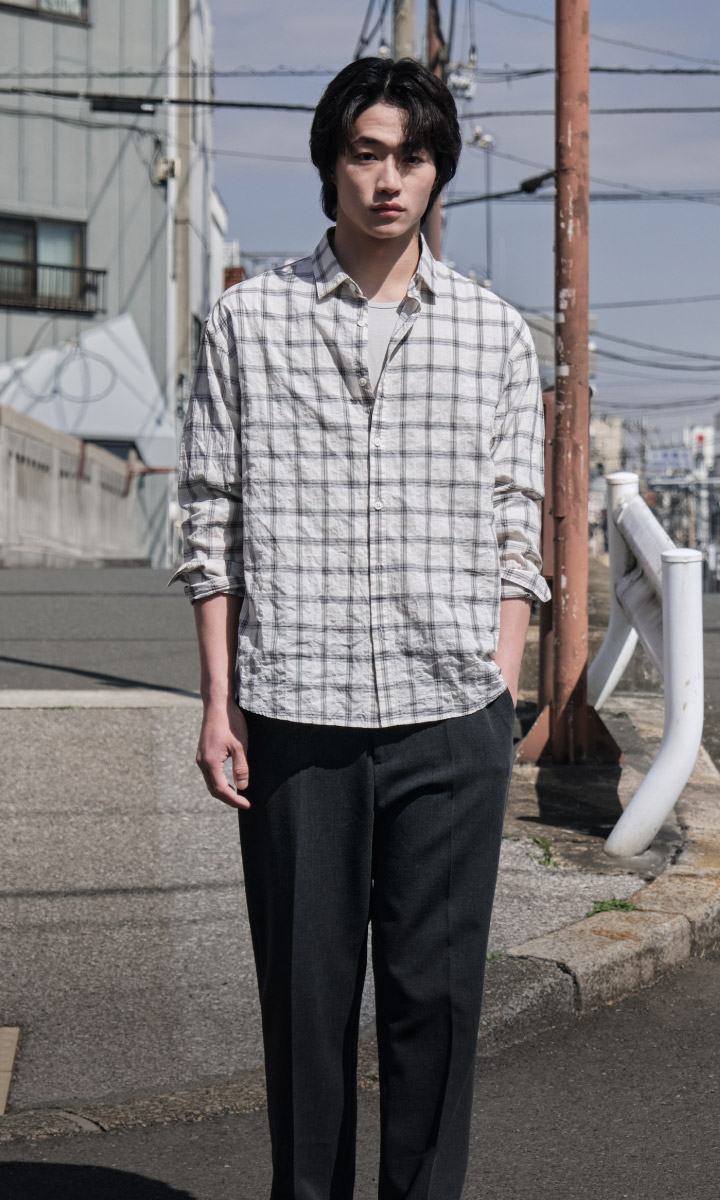 씨어서커 체크 셔츠_아이보리 (세미오버핏)