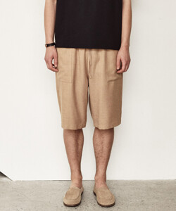 풀밴딩 스트링 하프 팬츠_브라운 (와이드핏)