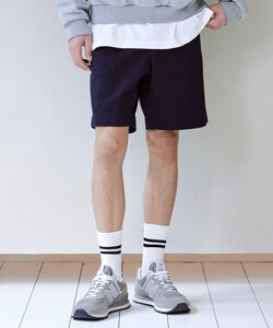 플리츠 하프 팬츠_네이비 (슬림핏)
